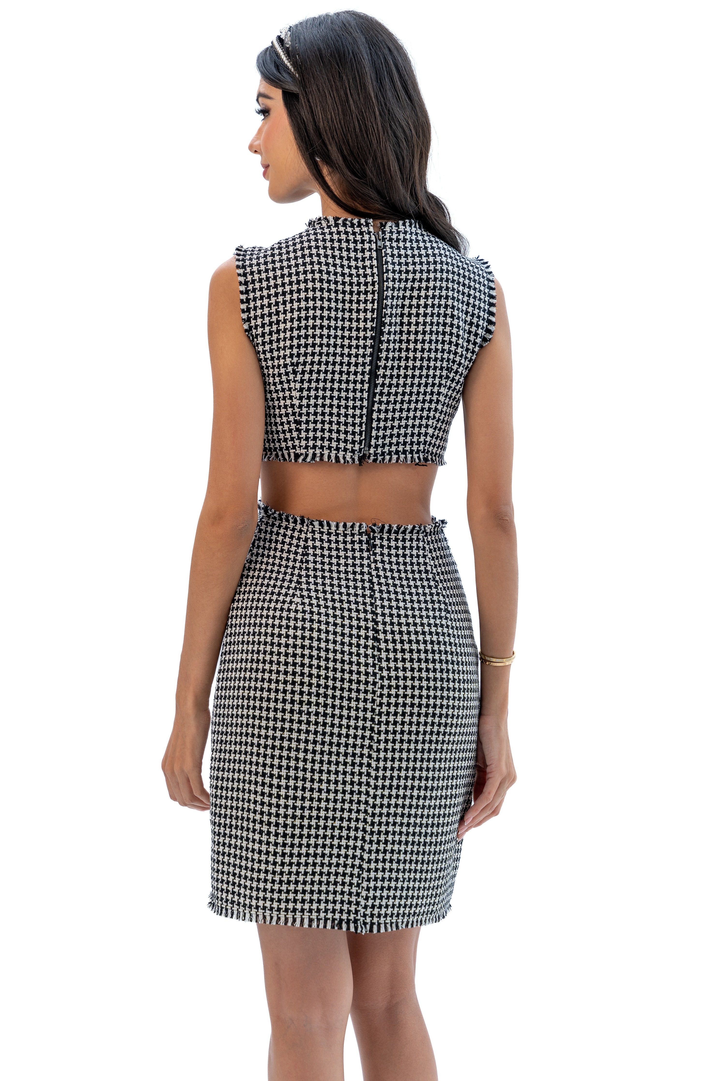 Featuring a captivating side and back cutout design, the Alice Dress offers a contemporary twist on classic sophistication. Whether you're meeting friends for lunch or out browsing boutiques, the Alice Dress is versatile yet undeniably elegant. Pair it with the La Perla headband for an elevated look.